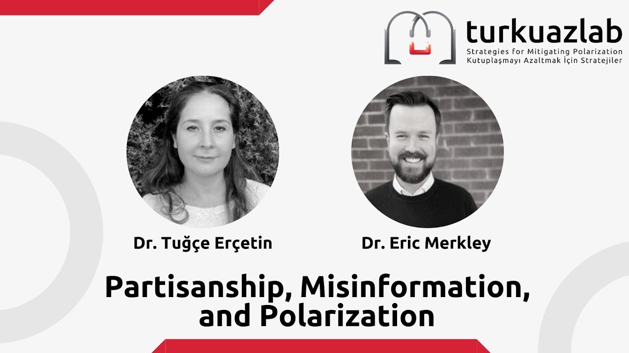 TurkuazLab webcast serisinin 3. bölümünde, Moderatör Dr. Tuğçe Erçetin ve Toronto Üniversitesi’nden konuğu Dr. Eric Merkley “Partizanlık, Mezenformasyon ve Kutuplaşma” hakkında bir söyleşi gerçekleştirdi. Söyleşide değinilen temel konular duygusal kutuplaşmanın toplumda yarattığı riskler; Covid-19 ve mezenformasyonun kutuplaşma üzerindeki etkileri; partizanlık, demokrasi ve kutuplaşma ilişkisi; ve kutuplaşmayı azaltmak için öneri ve stratejilerdi.