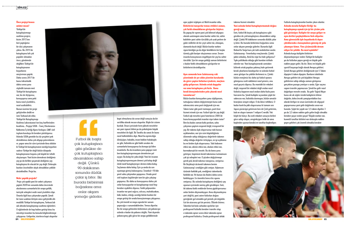 Dünyada ve Türkiye’de birçok sorun beraberce düşünmeyi ve ortak hareket etmeyi gerektiriyor. Çevre kirliliği ve iklim değişikliği başta olmak üzere dünya gezegeninin geleceği ve bizlerin çocuklarının, torunlarının yaşamı bu beraberliği başarabilmemize bağlı. Hepimizin sahip olduğu insan olma durumumuzdan doğan kırılganlıklar, ortak olan ihtiyaçlar çerçevesinde belirsizliklerle mücadele edebilmek için birbirimizin halinden anlamayı başarmamız şart. Ancak içinde yaşadığımız ekonomik ve siyasi koşullar, doğduğumuz aile, büyüdüğümüz mahalle, aldığımız eğitim, inançlarımız, üye olduğumuz dernekler, spor kulüpleri, siyasal partiler, sivil toplum kuruluşları, akranlarımız, medya ve sosyal medya bizi biz yaparken, aynı zamanda da bizleri ayrıştırıyor. Var olan farklılıkları büyütüp, çok daha fazla olan benzerliklerimizi görmemizi imkânsız hale getiriyor. Sahip olduğumuz kimlikler birden çok olsa da bazı kimlikler hepsinden baskın olup, diğerlerinin önüne geçerek, güçlü sınırlarla bizleri ayrıştırıyor. İşte siyasal alanda partiler, politikacılar ve liderler arasında gözlemlenen kutuplaşma da topluma, bizlere sıradan vatandaşlara da sirayet ederek, bu ayrışmayı büyütebiliyor. Parti tercihimiz kim olduğumuzu belirleyen en önemli kimliklerden biri haline gelebiliyor. Bu şekilde sahip çıktığımız parti kimlikleri, bizler için farklı parti taraftarları ile siyasal ve sosyal alanda konuşmayı, tartışmayı ve beraber çözüm geliştirmeyi imkânsız hale getiriyor.